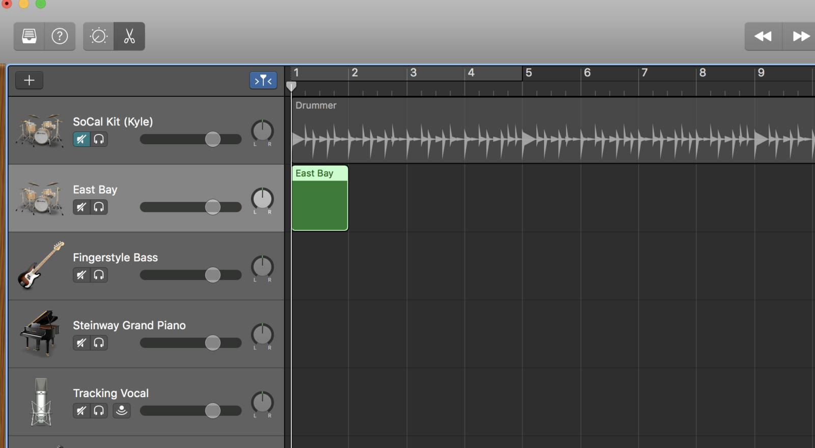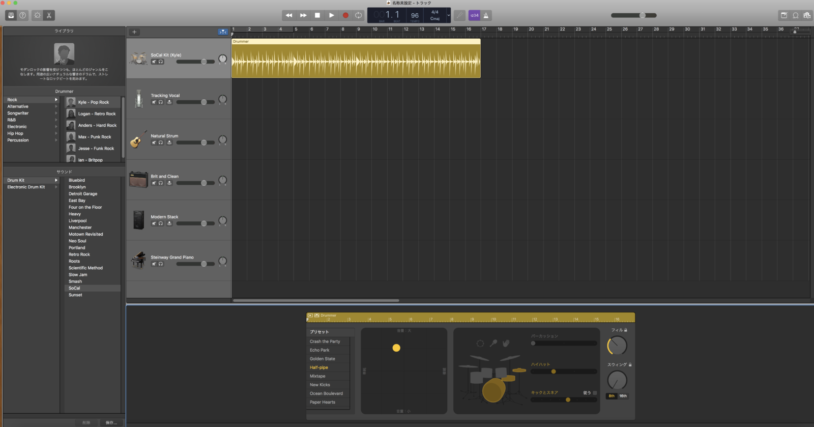 そのため、一度このドラムトラックをApple Loopsに追加してから、もう一度Apple Loopsから貼り直してあげる必要があります。