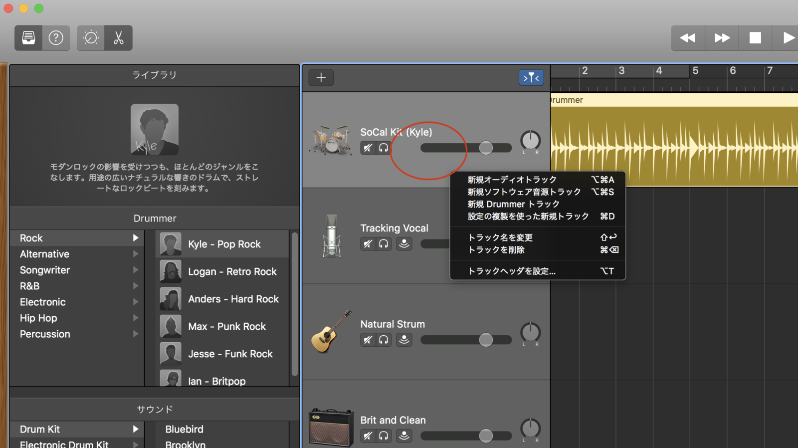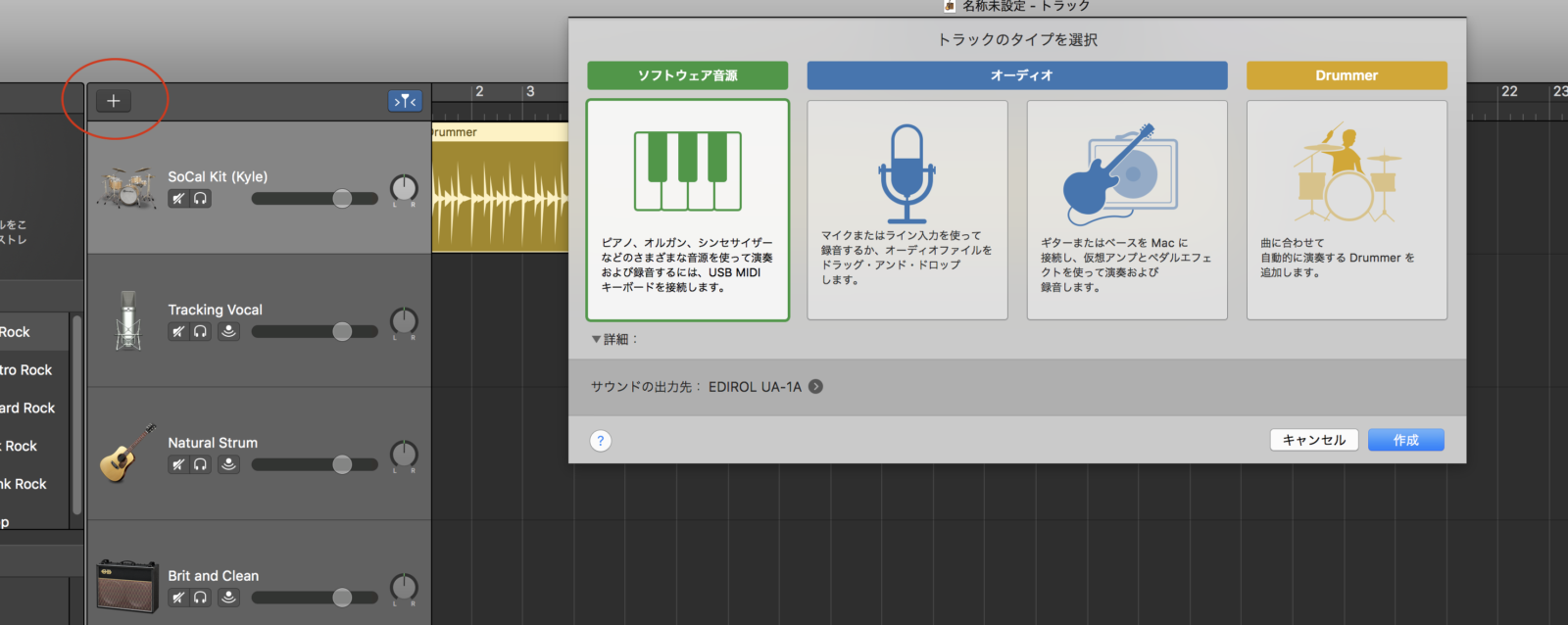 - もしくは、赤丸付近で右クリックしてトラックを作成。